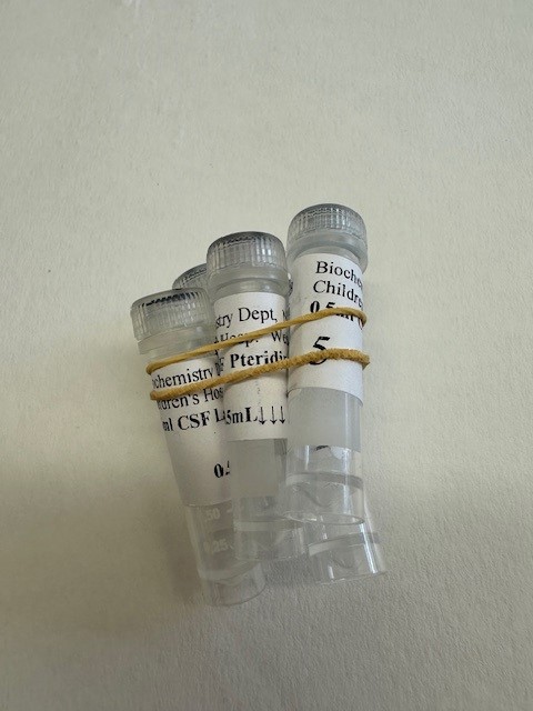 Special neurotransmitter microtubes sets supplied by Westmead Childrens Hospital are available for collection from the RMH Biochemistry laboratory. Collect 0.5 mL sequentially into each microtube 1-5. Protect from light and transfer to the laboratory on ice immediately after collection.